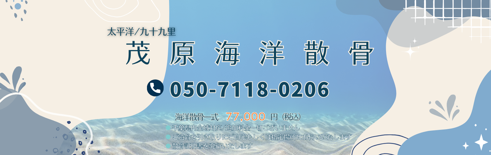 当社の海洋散骨プラン/千葉県内全域対応/77,000円税込/追加料金なし